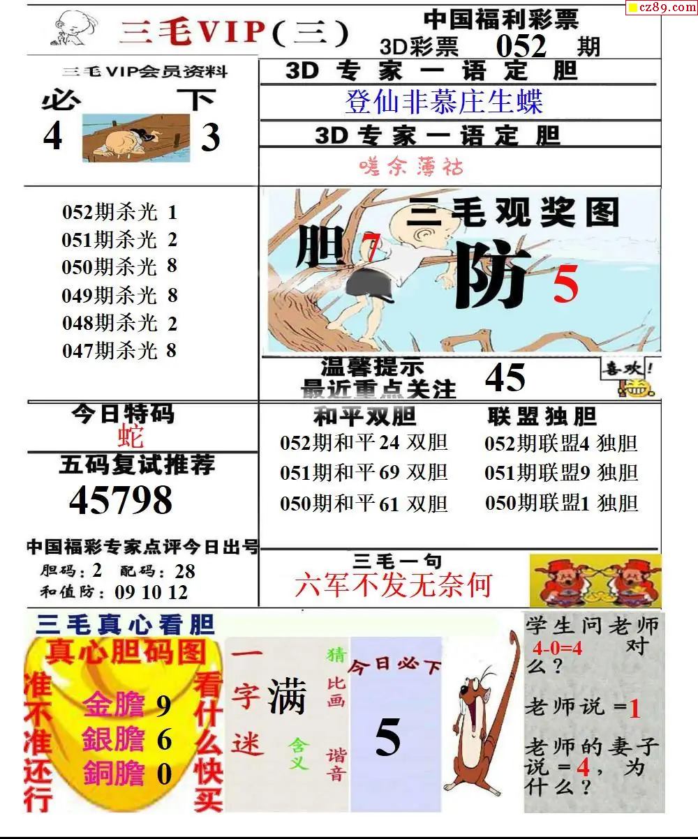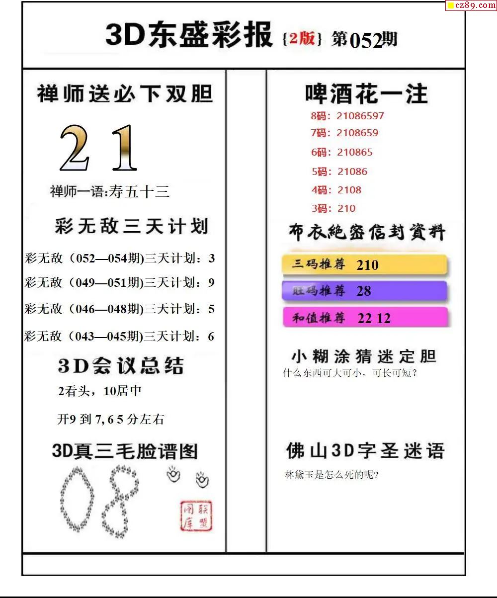 福彩3D2026052期东盛彩报+精品三毛会员版