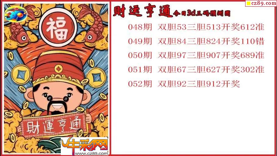 26年052期3d 财运亨通今日三码预测图