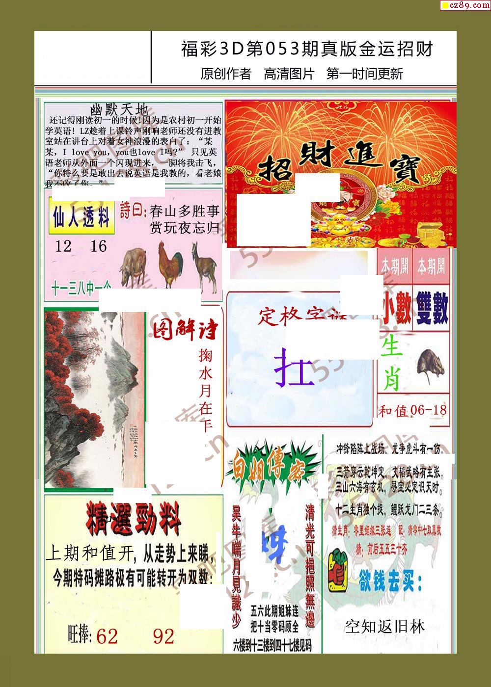 26年053期福彩3d金运招财画迷