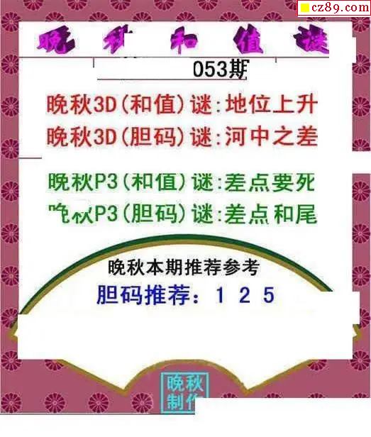 晚秋和值谜2026053期3d图谜
