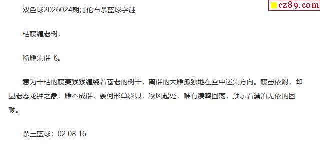 26年福彩双色球024期 哥伦布一句杀蓝球字谜