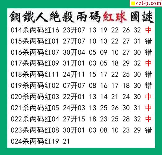 钢铁人杀两码红球024期双色球图谜 10中5