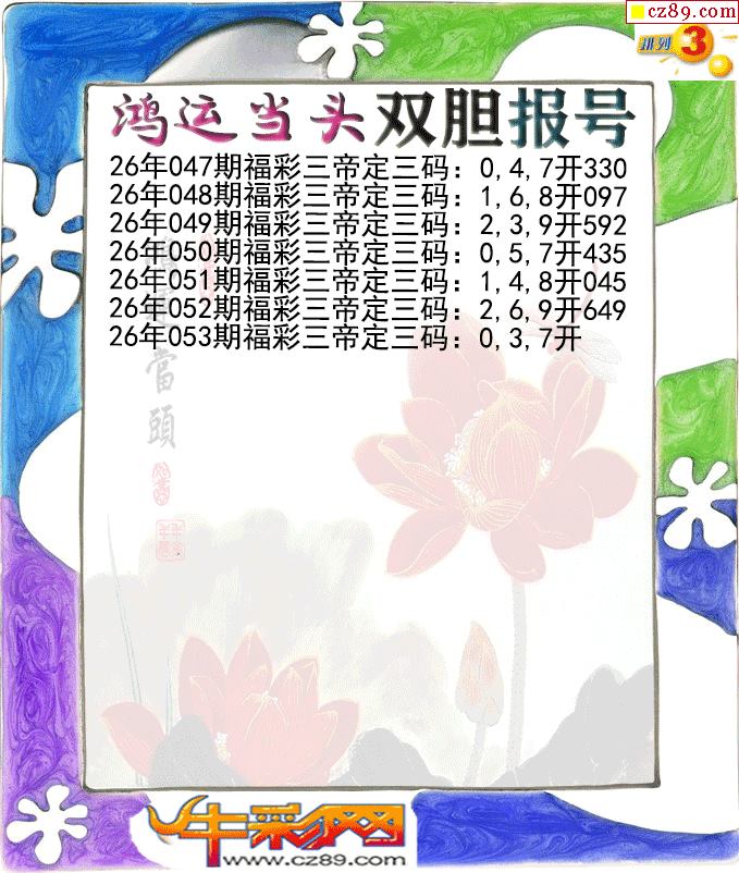 鸿运当头双胆报号053期体彩P3图谜