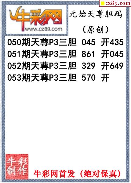 元始天尊胆码图053期体彩P3图谜(原创)