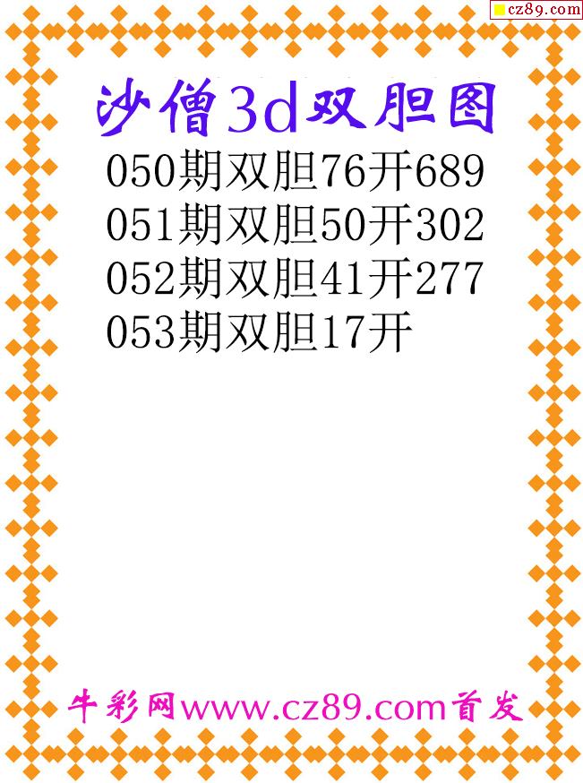 沙僧双胆26053期3d原创图谜