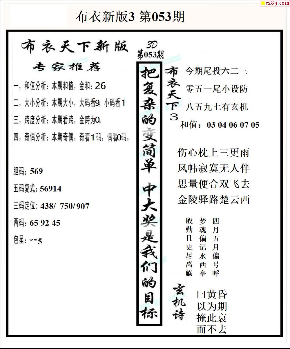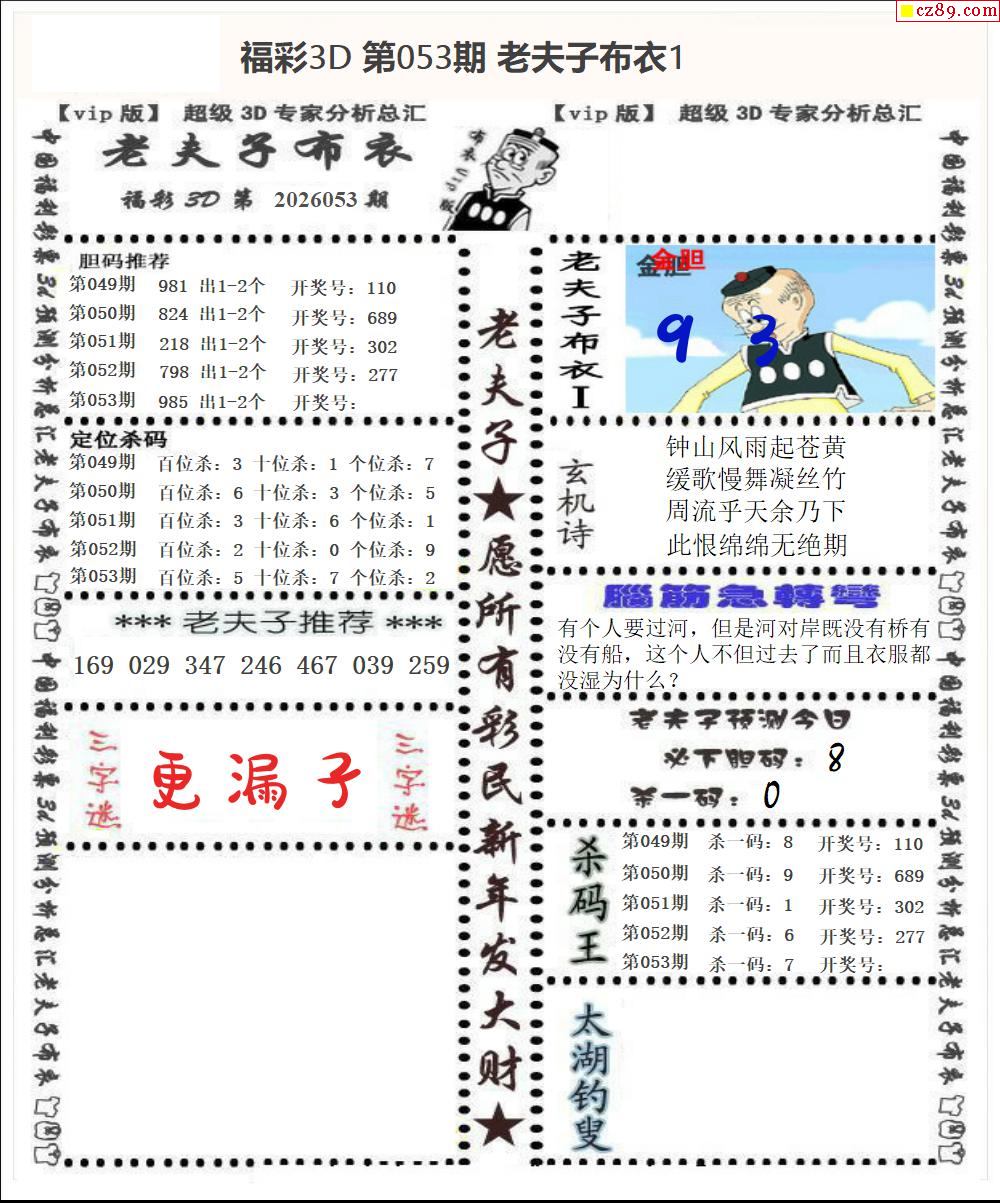 云漂漂2026053期3d图谜