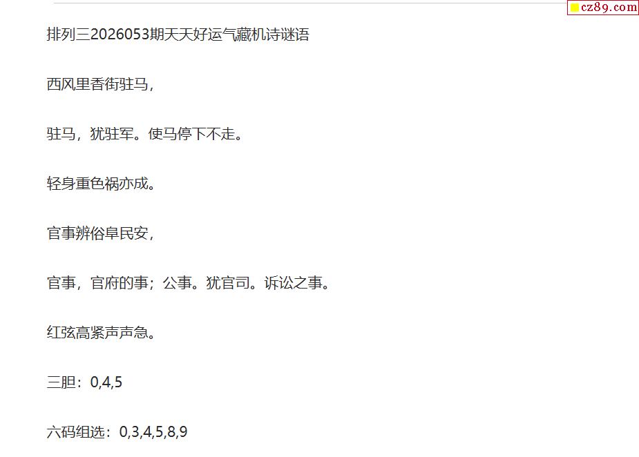 体彩P3字谜汇总2026年053期超级马克p3今日字迷总汇