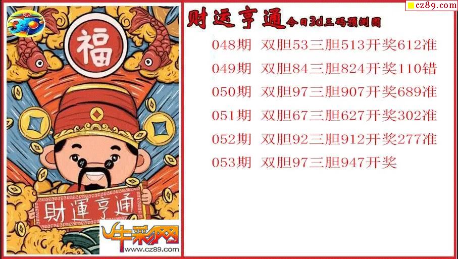 牛彩版3D预测彩报图26年053期打印版