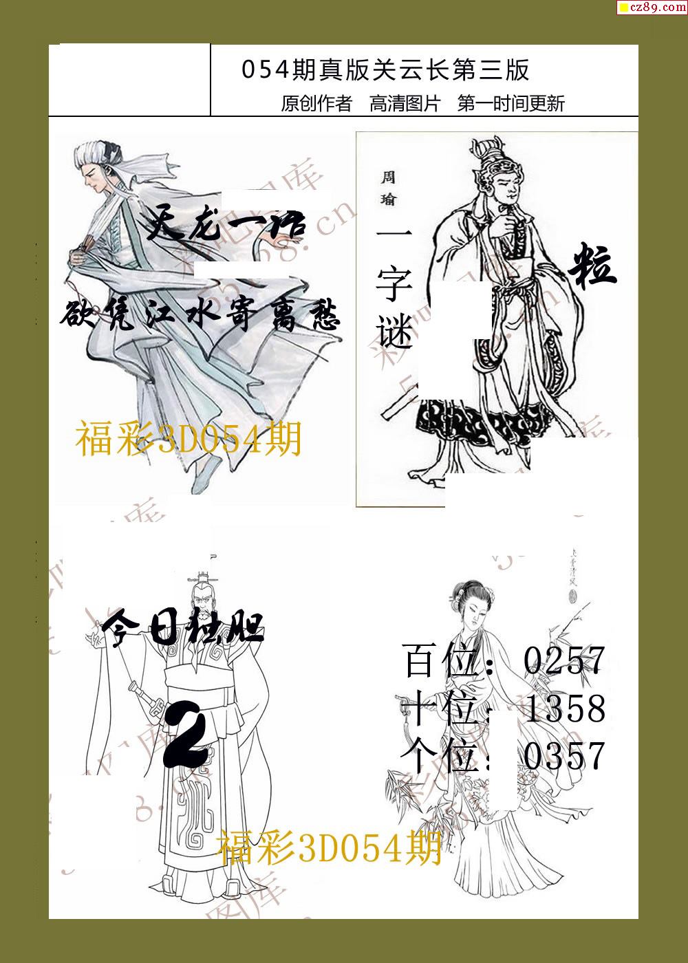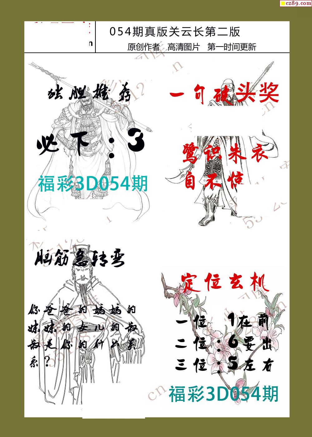 26年054期福彩3d真版关云长图谜