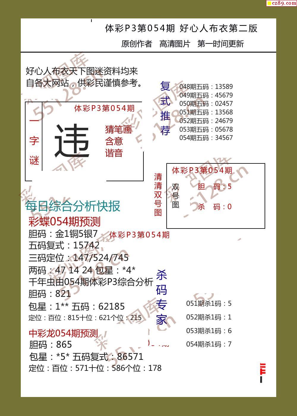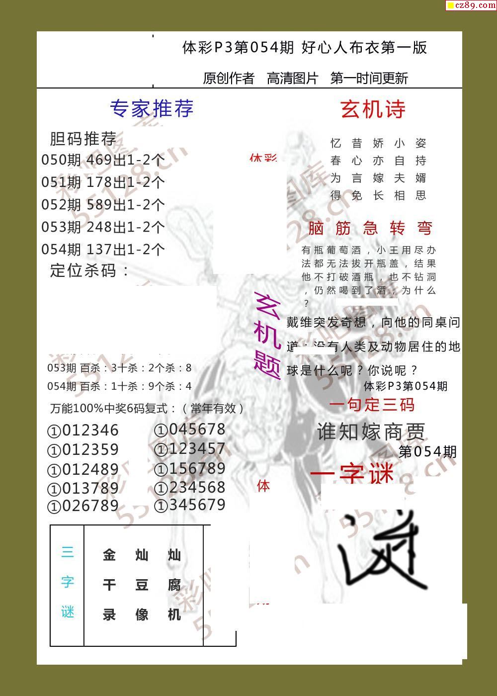 2026年054期牛彩网体彩P3画迷图谜汇总分享