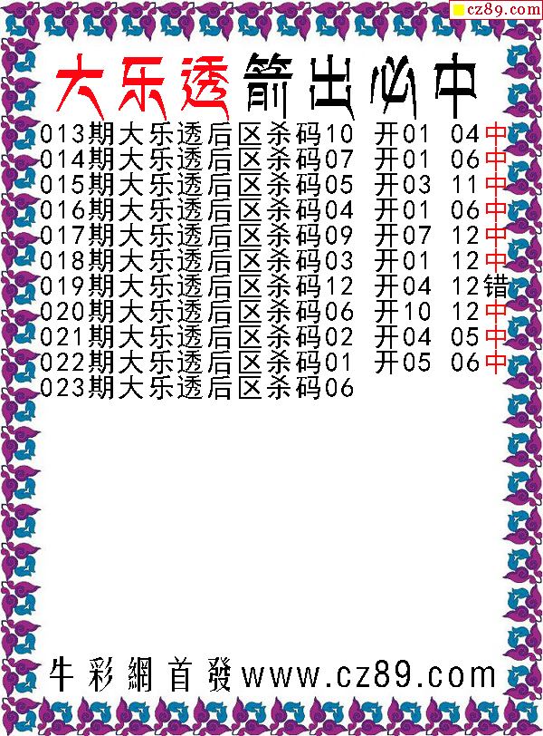 大乐透023期牛彩特邀专家前区后区杀号定胆图表