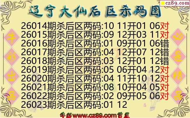 大乐透2026023期辽宁大仙后区杀码图迷