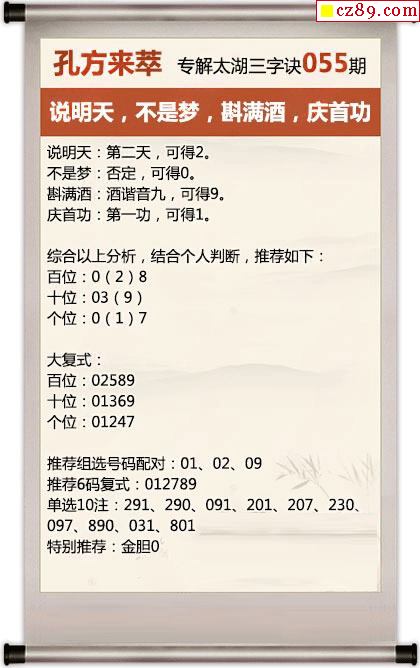 26年055期第五梦解太湖字谜 斟满酒