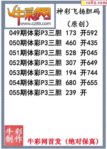 神彩飞扬三胆055期体彩P3图谜(原创)