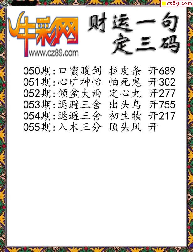 牛彩版3D预测彩报图26年055期打印版