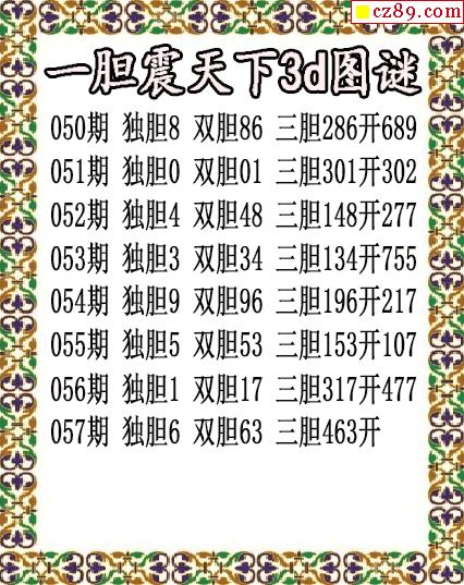 一胆震天下独胆2026057期3d图谜(原创)