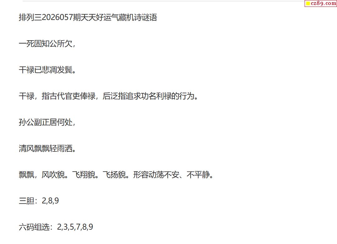 排列三26年057期出号必赢字谜透码