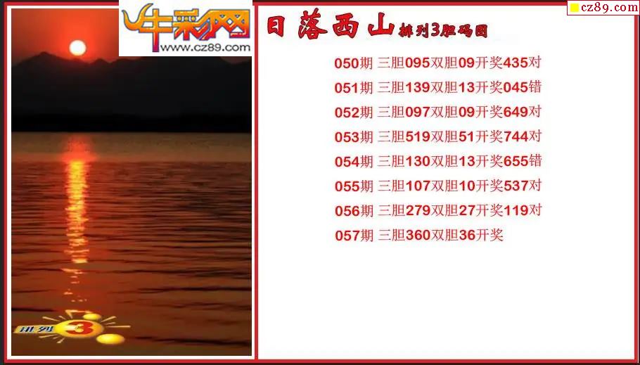 2026057期P3日落西山胆码图谜