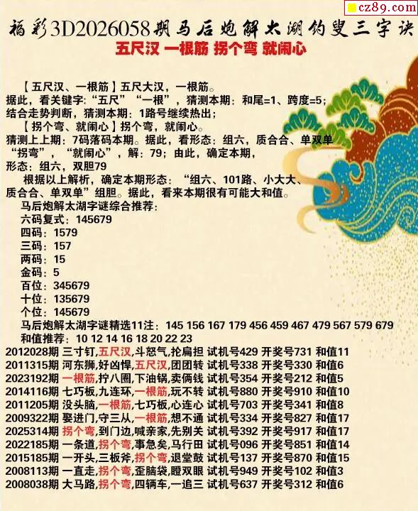 悲殇福彩3D26年058期太湖钓叟解谜