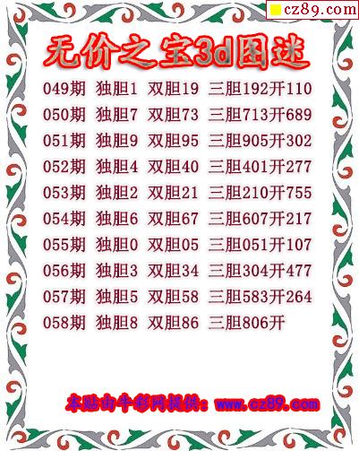 无价之宝送胆2026058期3d图谜(原创)