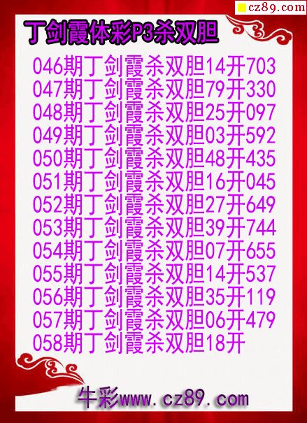 26年058期丁剑霞体彩P3杀双胆图