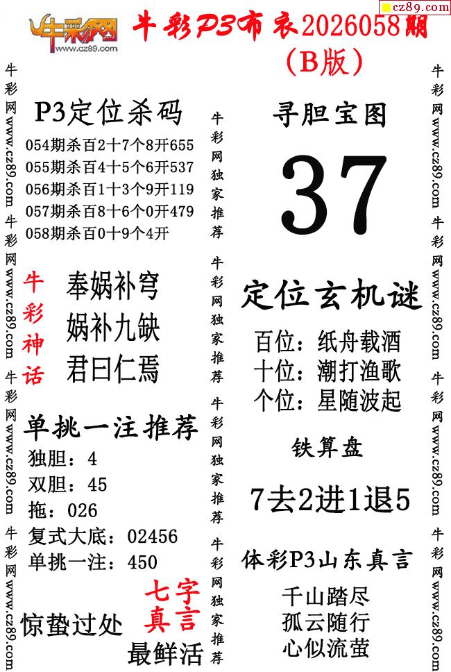 牛彩P3布衣26年058期AB版图谜(精华版)