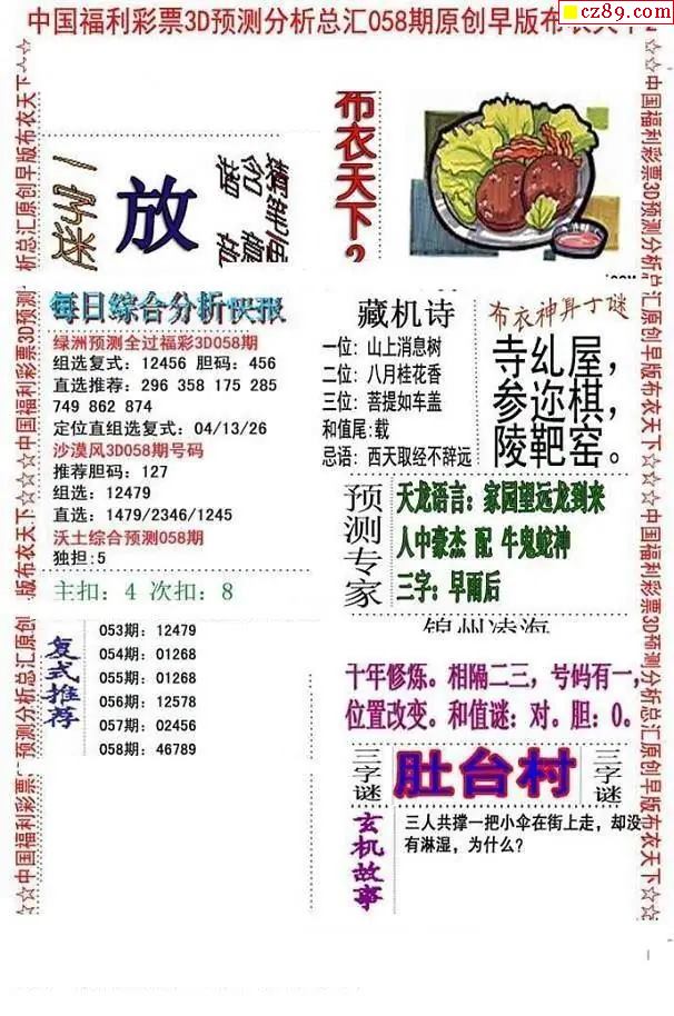牛彩版3D字谜彩报图26年058期打印版