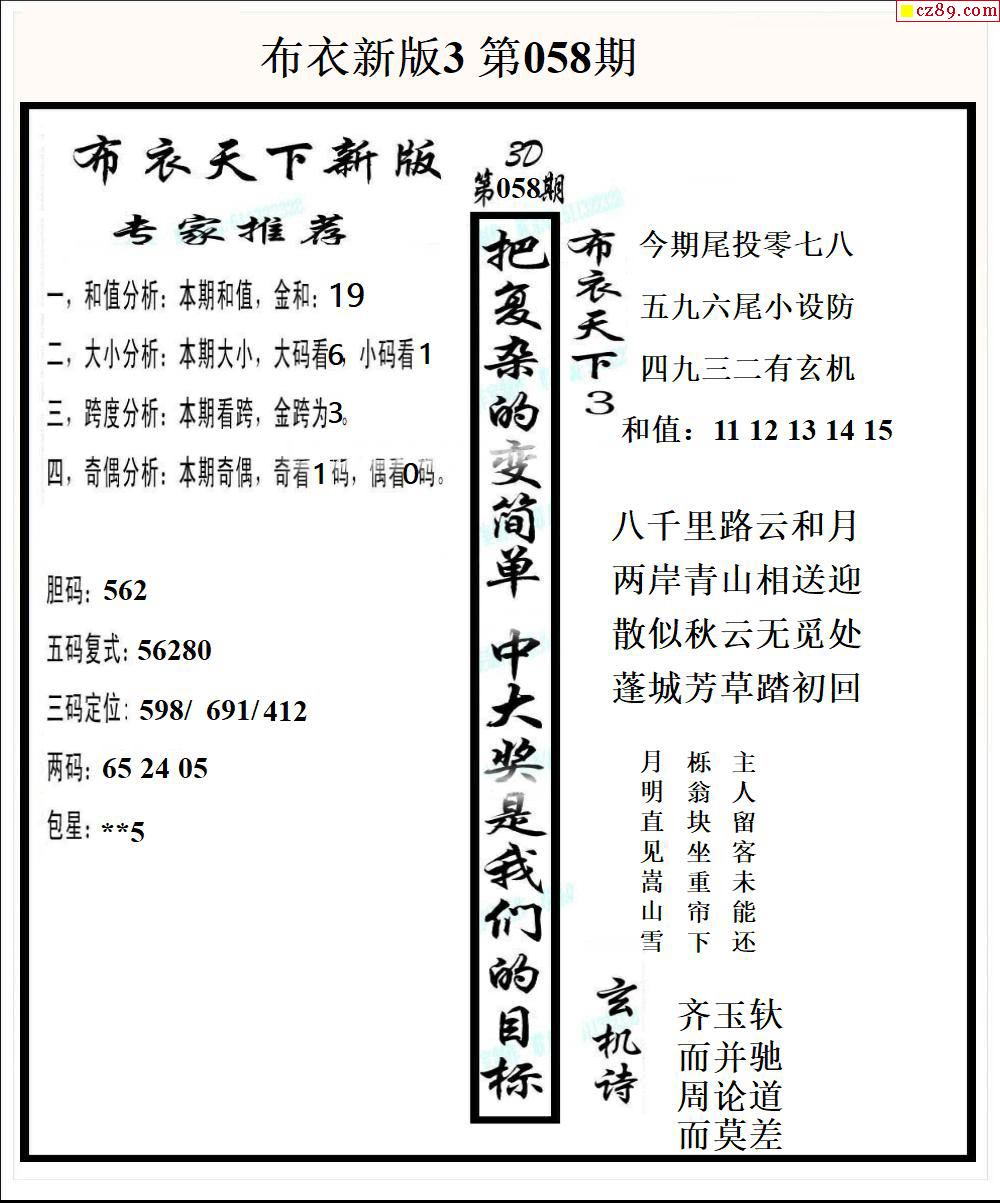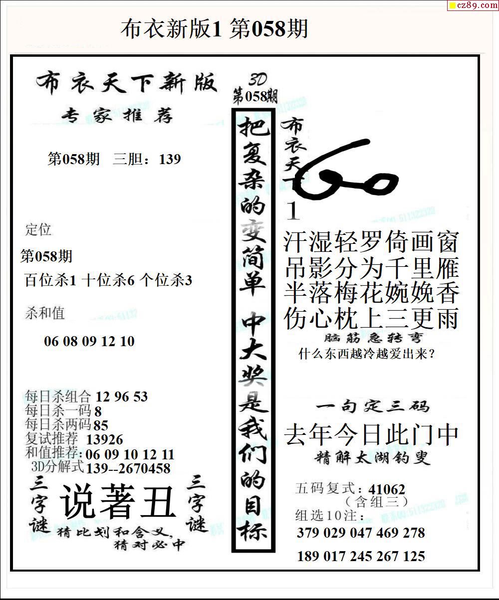 2026058期真精华布衣123456