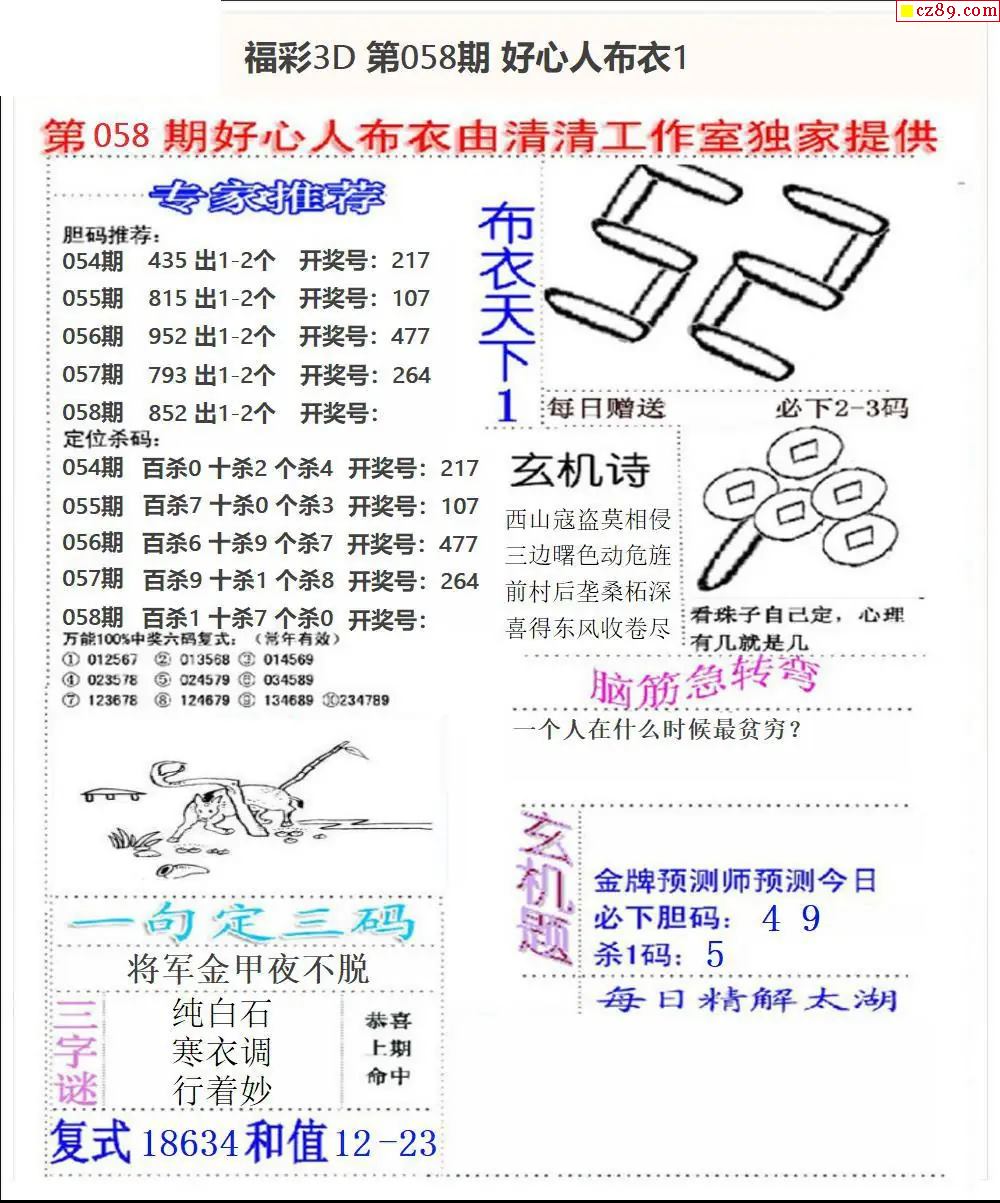 福彩3D2026058期图谜汇总