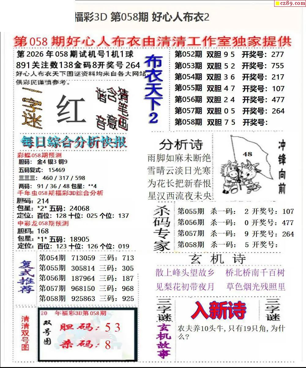 福彩3D2026058期牛彩图谜预测汇总