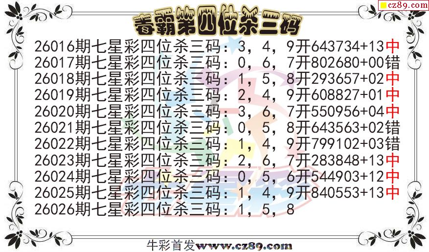 七星彩2026026期毒霸第四位杀三码图迷 10中7
