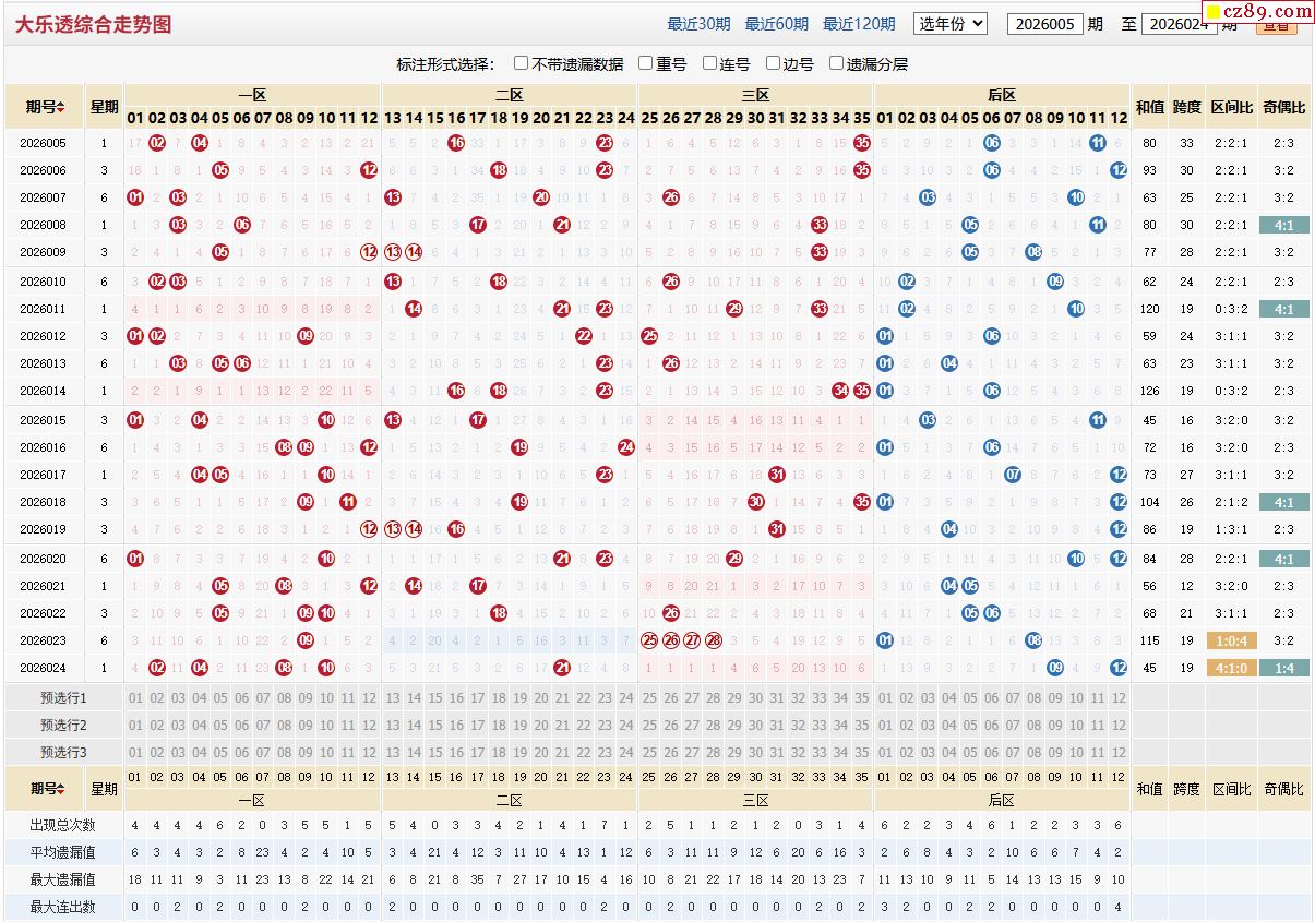 26年025期体彩大乐透近期走势图分析