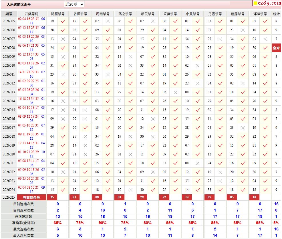 26年025期彩票专家超级大乐透前后区杀号图表