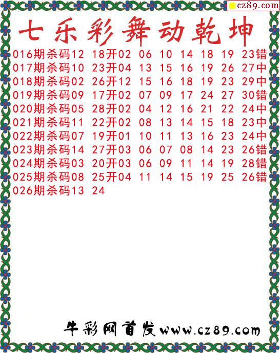 七乐彩2026026期乱舞飞扬今日图谜 10中10