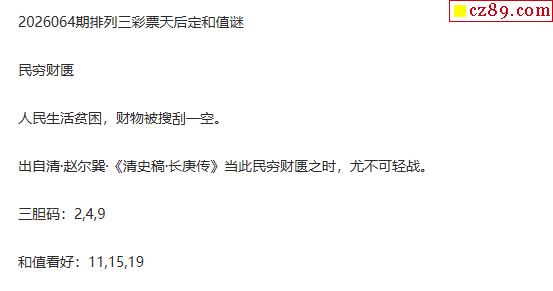 体彩排三2026年068期 武当玉女掌门一句定三码