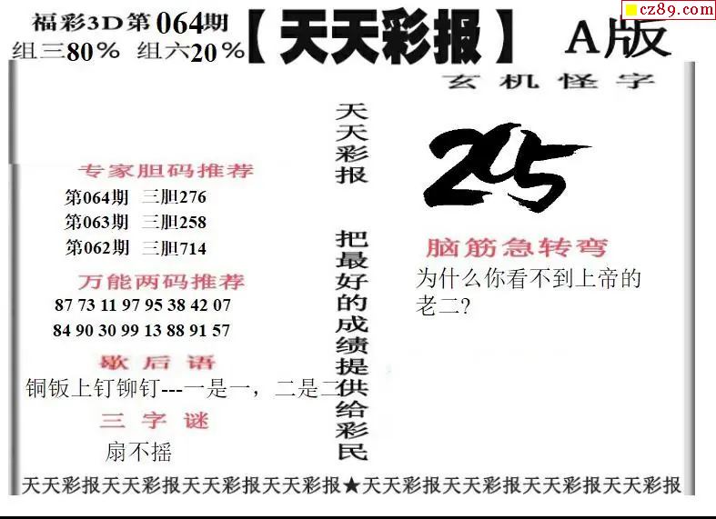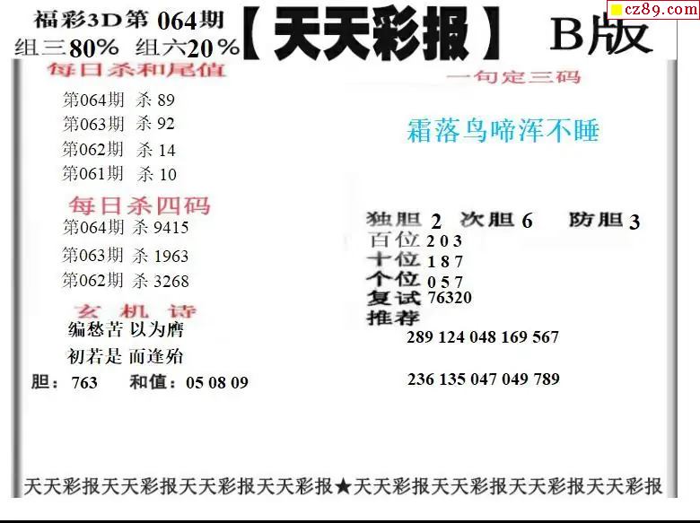 福彩3D2026064期天天彩报A版 天天彩报B版