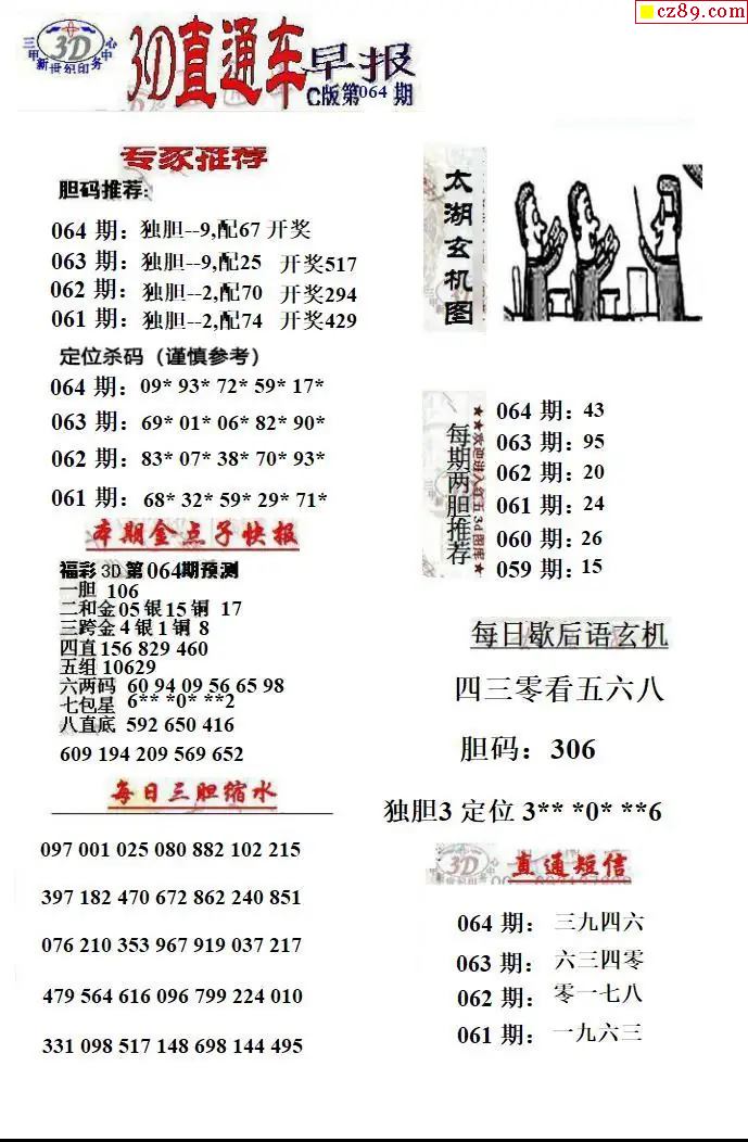 福彩3D2026064期直通车早报ABCD版