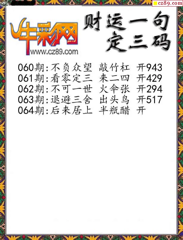 福彩3D2026064期图谜汇总