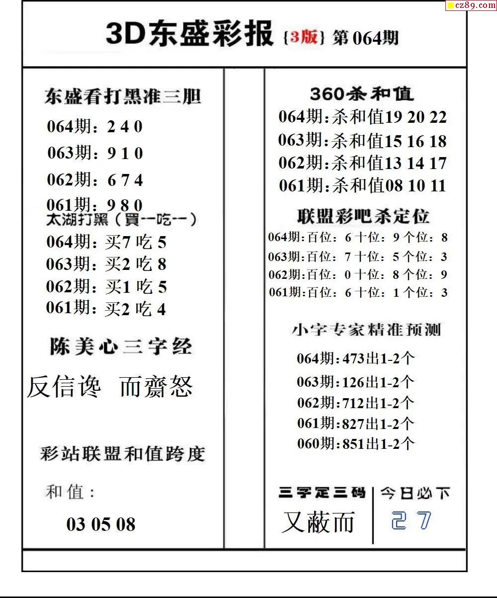 2026065期3D图谜汇总(一)