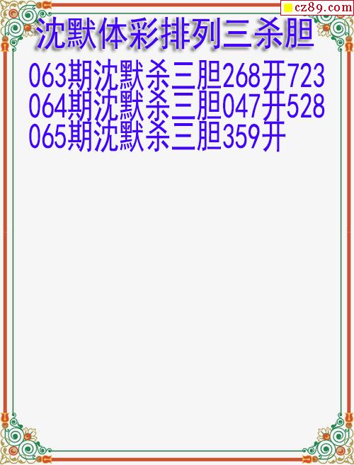26年065期沈默体彩排列三杀胆图迷