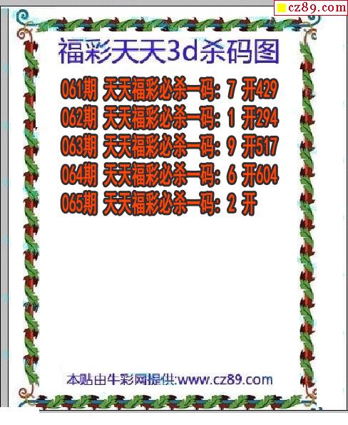 福彩天天杀码2026065期3d图谜(原创)