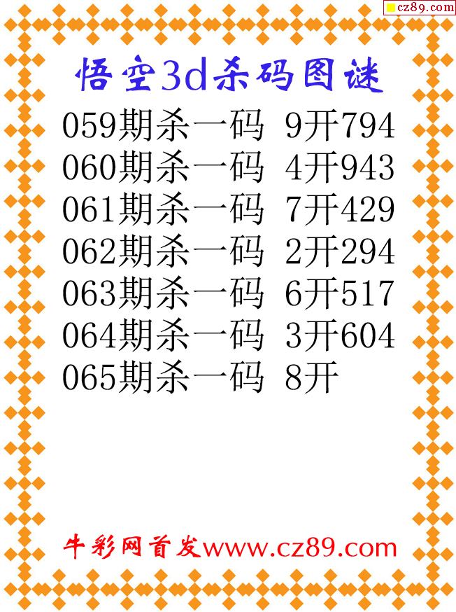 彩神金算子杀码2026065期3d图谜(原创)