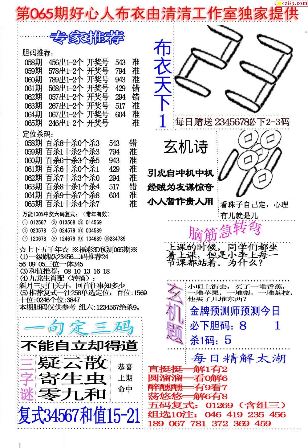 2026065期3d字谜图谜总汇