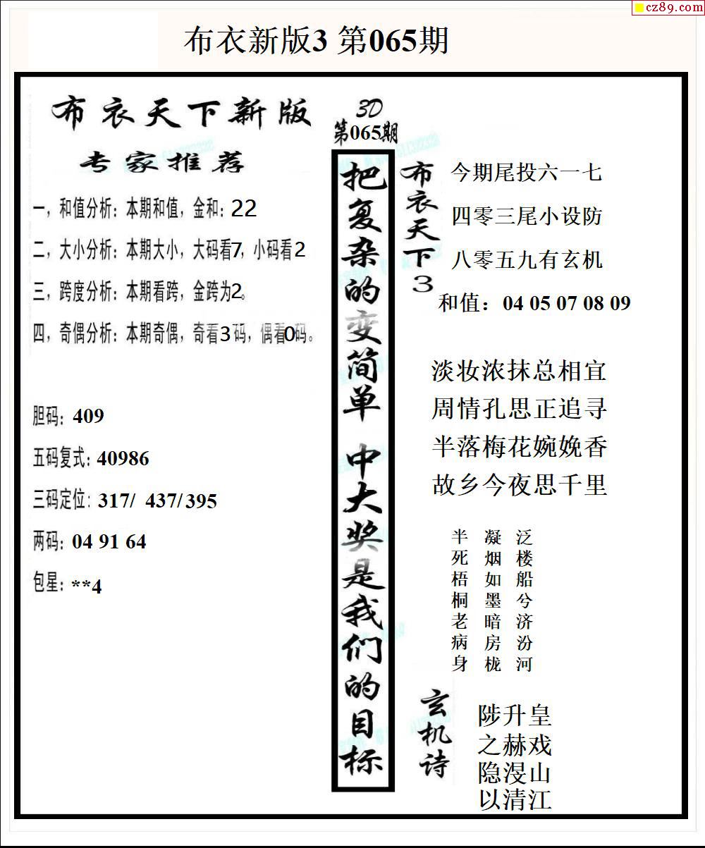 2026065期3D图谜汇总(一)