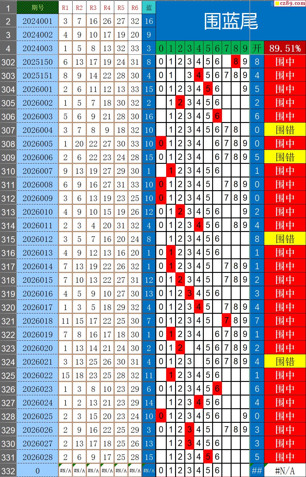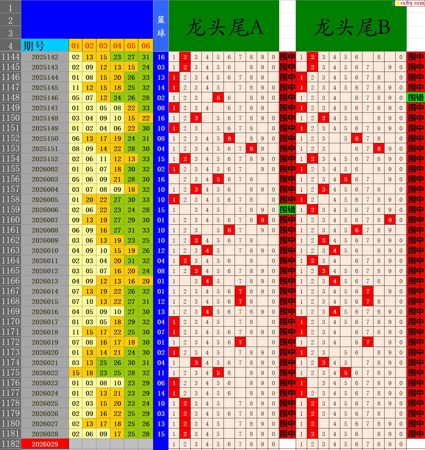 26年029期秋雨龙头凤尾走势图表