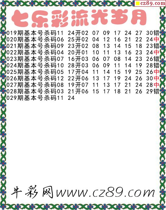 七乐彩2026029期流光岁月杀码图谜 10中5