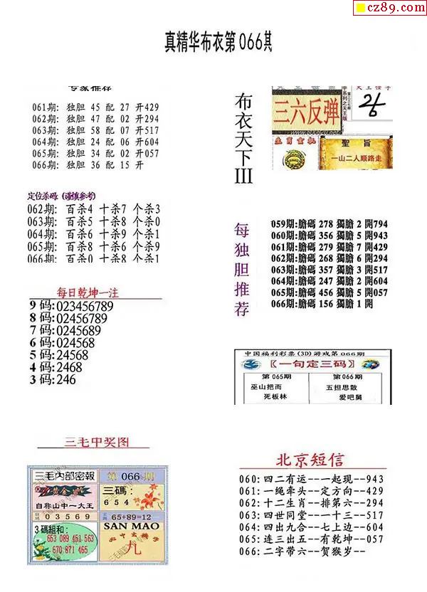 2026066期真精华布衣123456