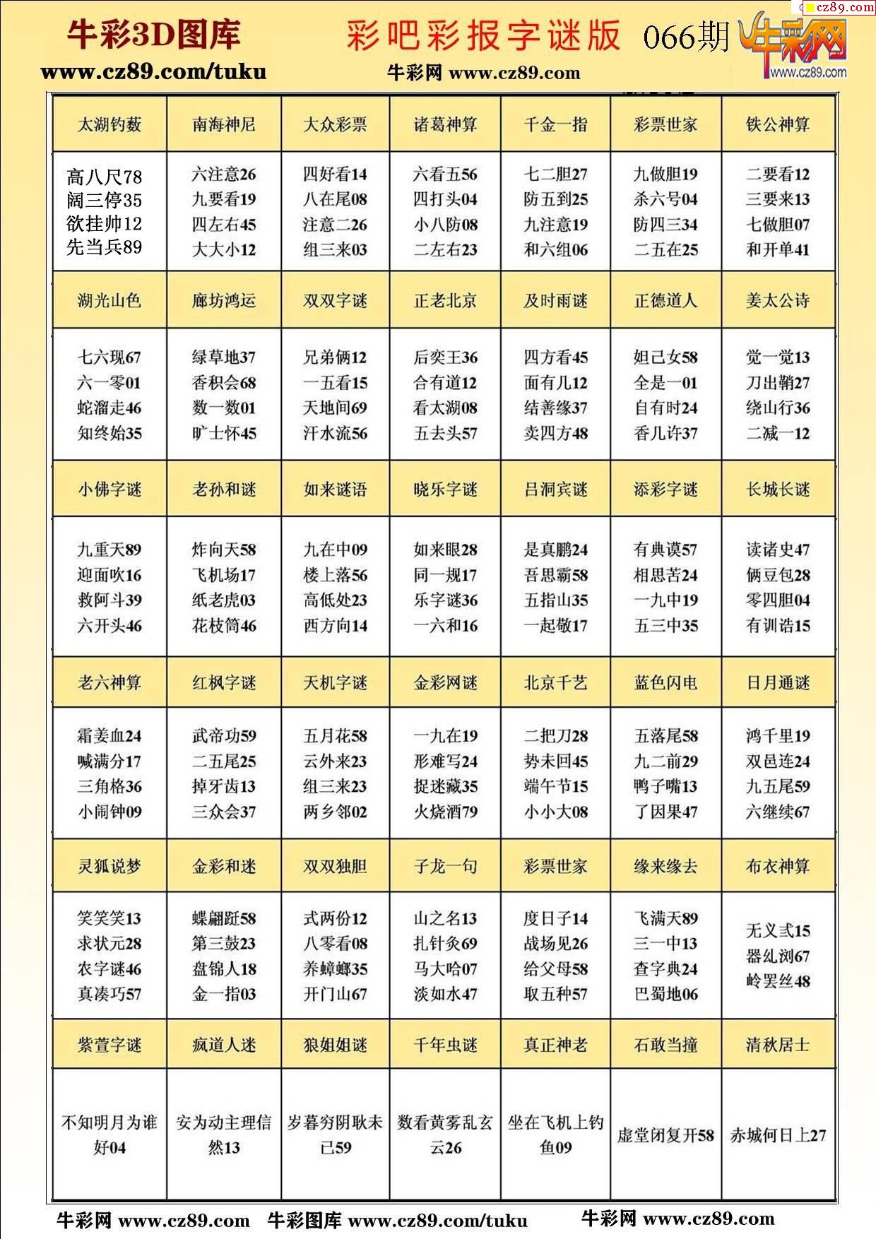 牛彩版3D字谜彩报图26年066期打印版