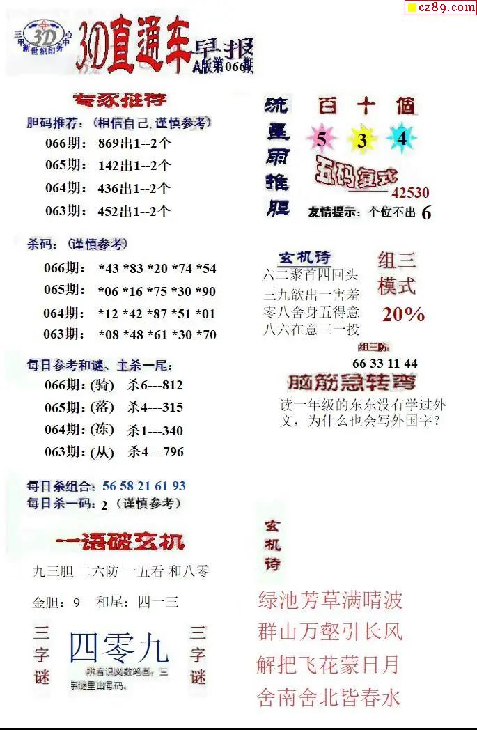 福彩3D2026066期直通车早报ABCD版
