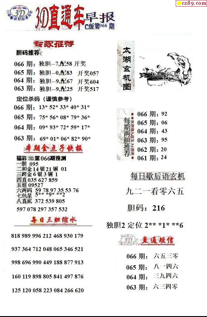 2026066期解太湖3d字图迷汇总报